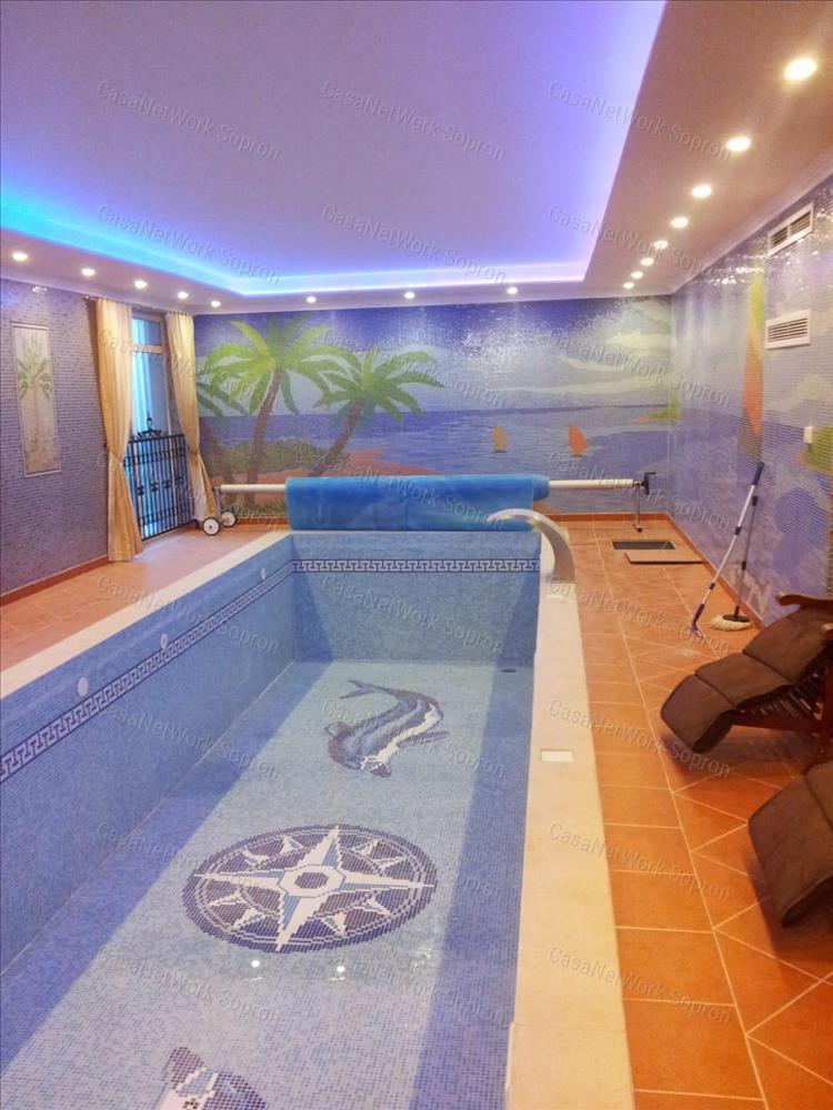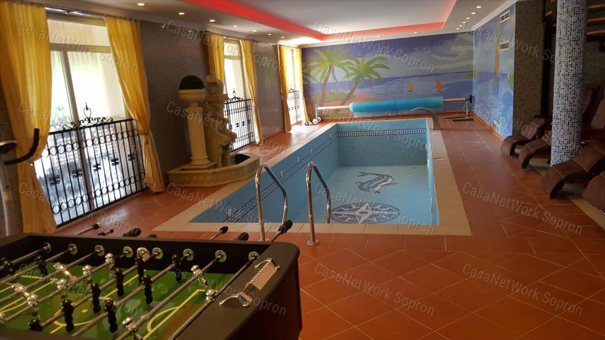 -wellnes részleg. 180 Nm, fedett úszómedence, infrakabin, finn szauna, yakuzzi, pihenő biliárdasztallal, pihenő ágyakkal