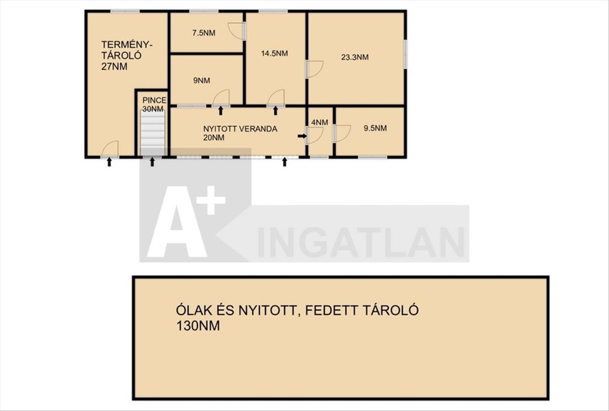 - téglából 1996-ban épített terménytároló, ami a ház toldaléka szintén alkalmas még egy szoba kialakítására, alatta 30nm-es pince található
