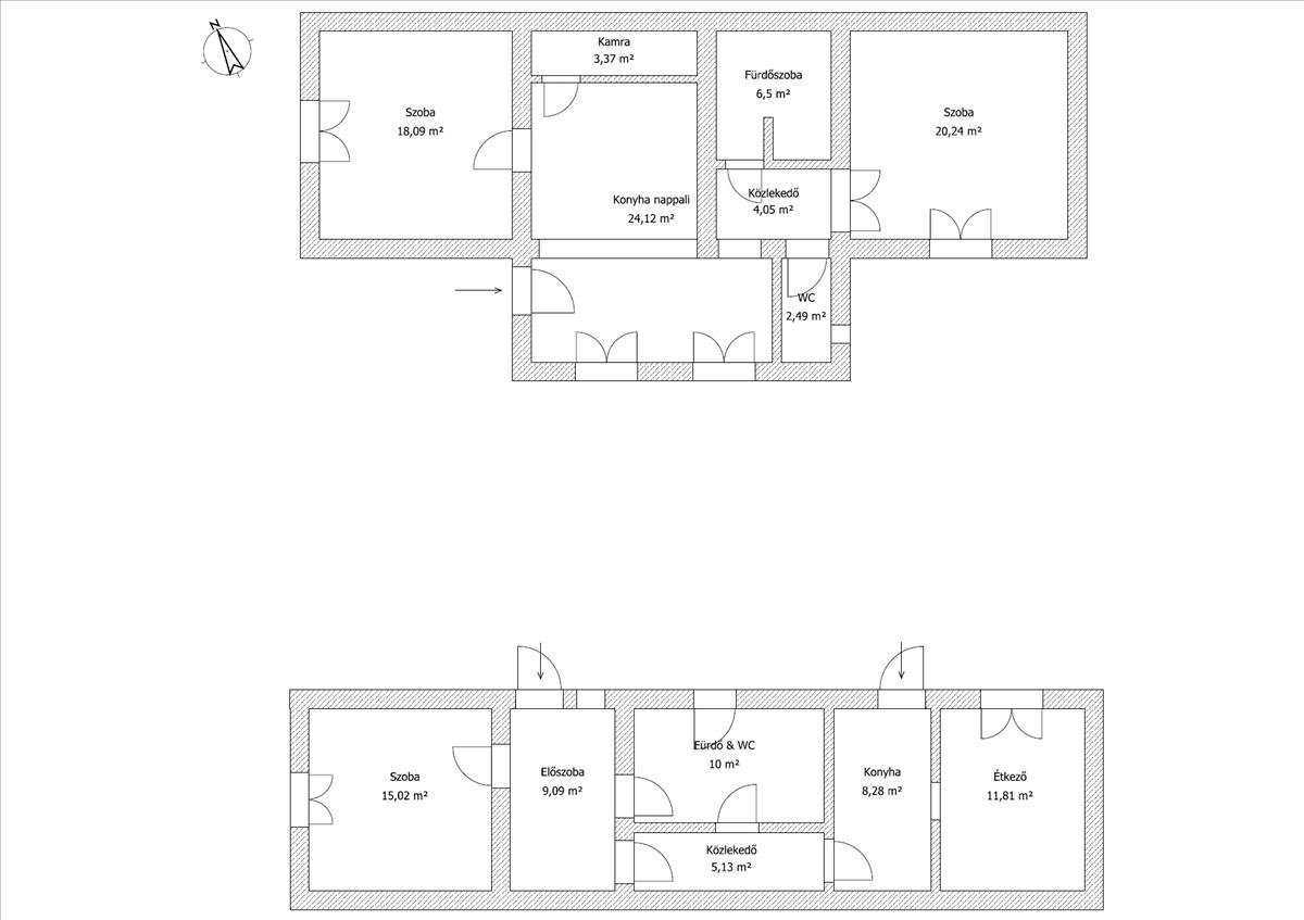 - 2 tágas szoba