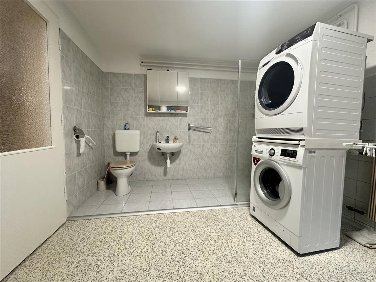 Az alsó szint eredetileg garázs, tároló és kazánház volt, de a jelenlegi tulajdonosok egy külön bejáratú, akadálymentesített lakrészt alakítottak ki belőle – ideális lehet vállalkozásnak, hobbiszobának vagy akár egy másik generáció számára.