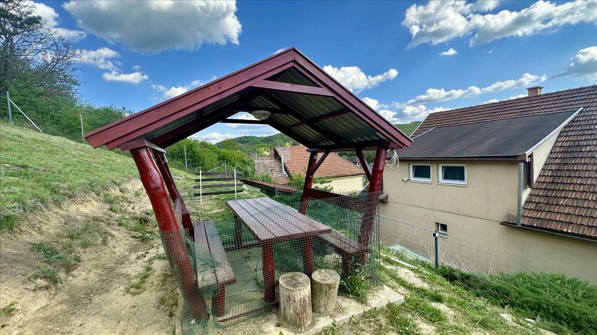 A ház mögött hatalmas kert terül el, ahonnan lélegzetelállító panoráma nyílik a környező hegyekre.
