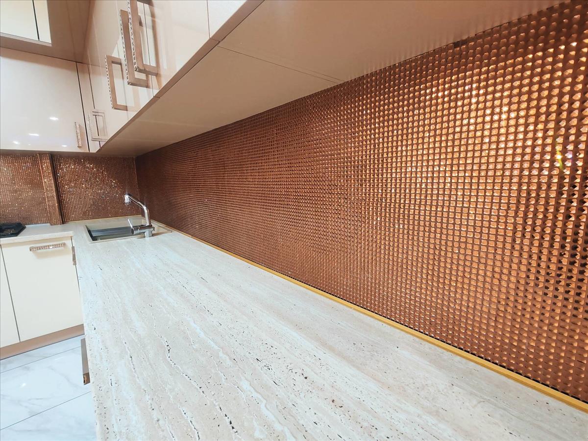 - a konyha: teljesen egyedileg gyártott prémium konyhabútor, olasz arany kristálymozaikkal