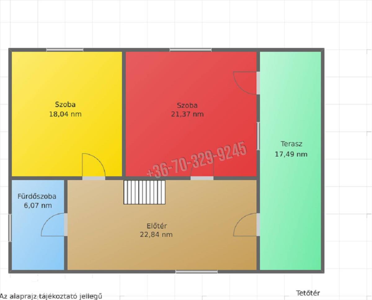 Tetőtér (beépített): előtérből nyíló 2 szoba, fürdőszoba, valamint egy 17, 5 m²-es tetőterasz