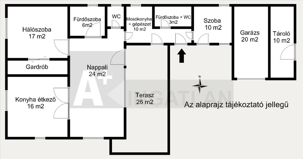 - melléképület, mely a főépülethez kapcsolódóan a lakótér részét képezi: mosókonyha + 1 szoba