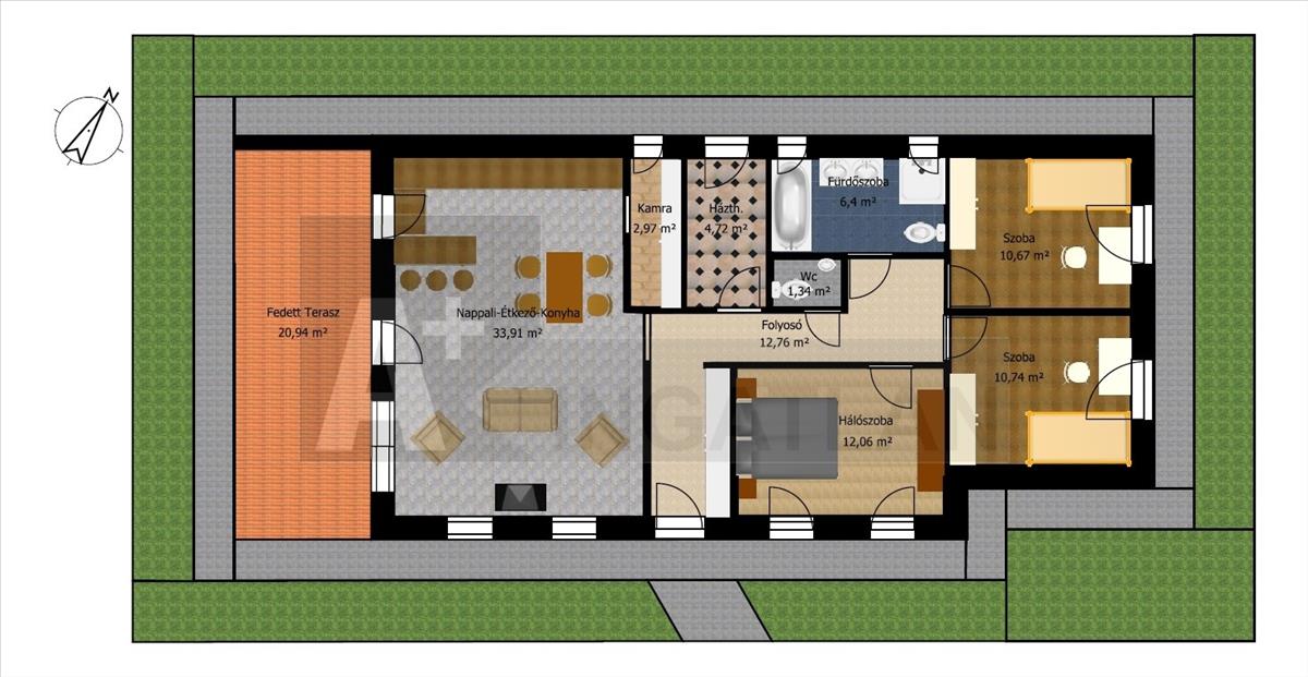 - a telken 1 ingatlan is eladó, földszintes a látványterveken látható az elrendezése.