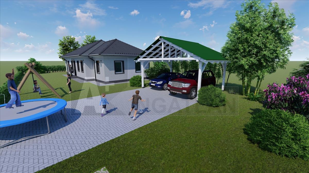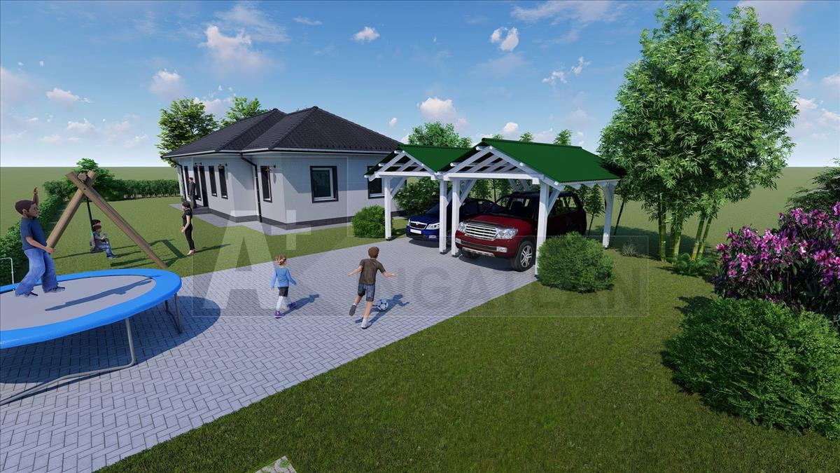 Kulcsrakész kivitelezés ~ 97 nm hasznos alapterületű épület + ~22nm fedett terasz földszintes családi ház. Az épület körül a szomszédos telek felőli oldal kivételével 80 cm széles járda készül térkőböl.