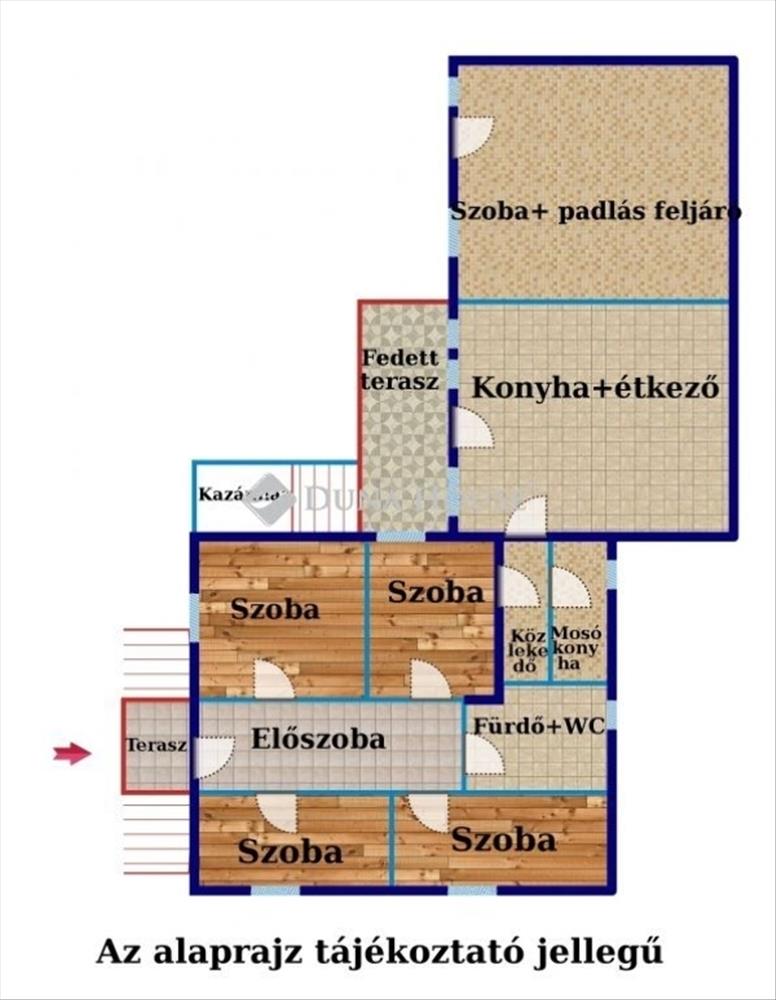 Külön bejárattal rendelkezik egy félkész szoba ahonnan fel lehet menni a padlásra. a padlás nem beépíthető.