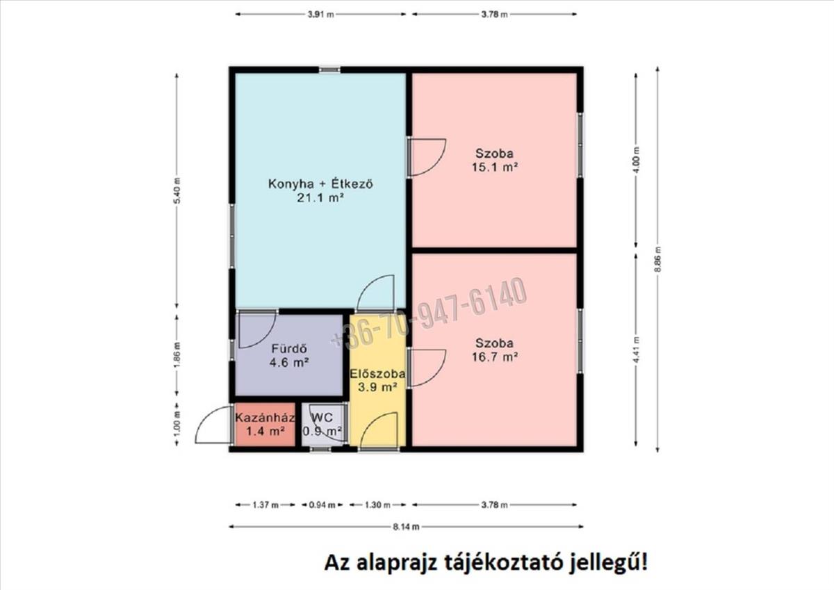 - a ház elrendezése ideális: mindkét szoba külön nyílik, a 21 m²-es konyha-étkező pedig akár amerikai konyhás nappaliként is funkcionálhat – csak rajtad múlik!