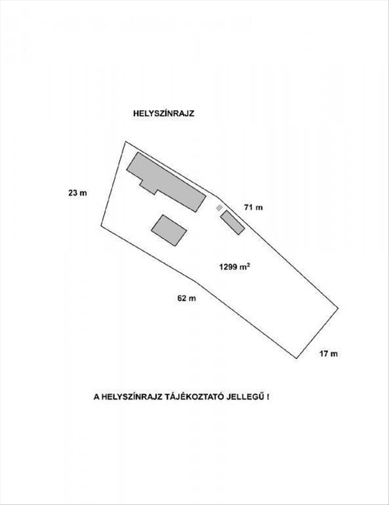 - Telek területe: 1 299 m2, utcafront 23 m széles, teljesen körbekerített