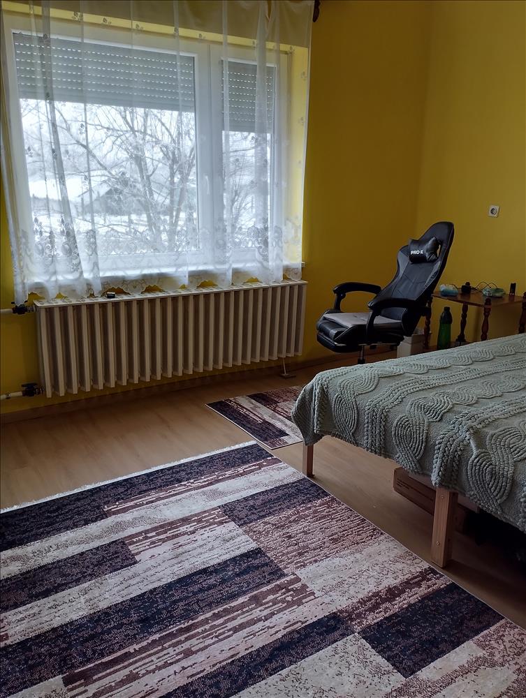 Kàdàrkocka téglaépítésű családi ház kb 80m2 telekterület 2100 m2. Fűtés külön kazànhàzból kondenzációs gázkazán és vegyestüzelésű kazán adja a meleget. Fürdőszoba hideg burkolat, villanyboyler bîztositja a melegvîzet. Aljzat spc vizàlló padló szobàkban, folyosón, konyhâba. 2És félszoba, utcàra két nagy ablak redőnnyel. Egésznap vilàgos szoba.