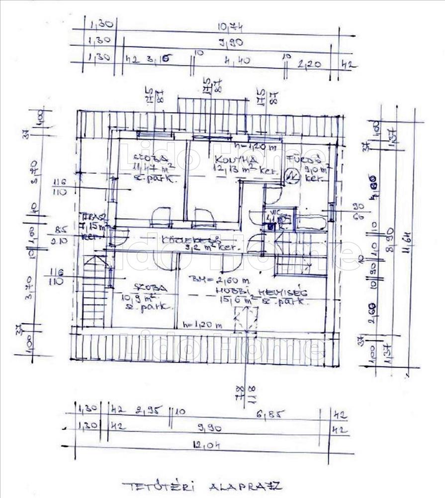 - tetőtér (70 nm + erkély 7, 15 nm): közlekedő, hobbi helyiség, 2 szoba, konyha-étkező, fürdőszoba káddal, külön wc, erkély, lépcsőtér