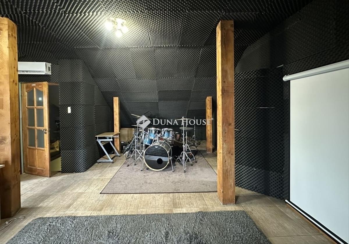 A tetőtérben hangszigetelt nappali (mozi vagy zeneszoba), hálószoba, fürdő, külön wc és beépített szauna került kialakításra.