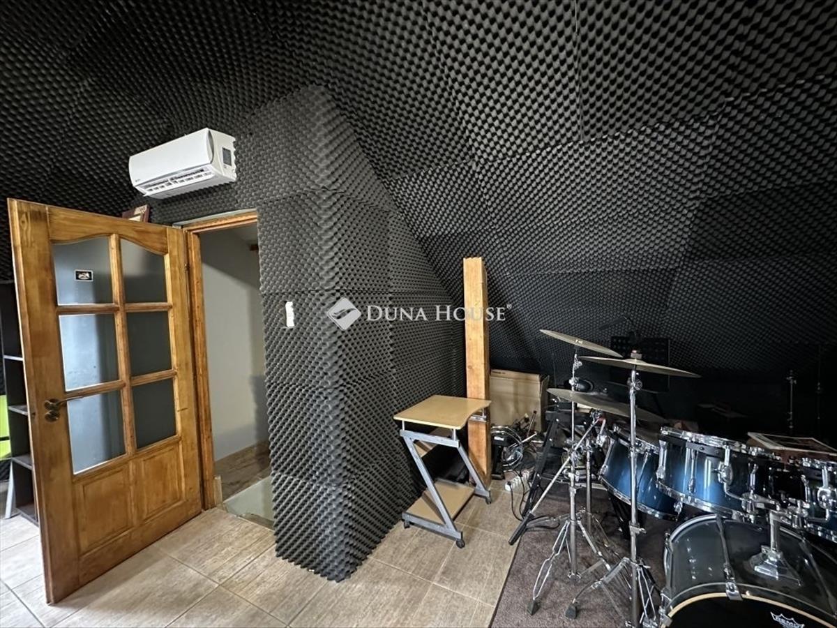 A tetőtérben egy hatalmas hangszigetelt nappali kapott helyet, amely jelenleg alkalmas zeneszobának vagy házimozinak.