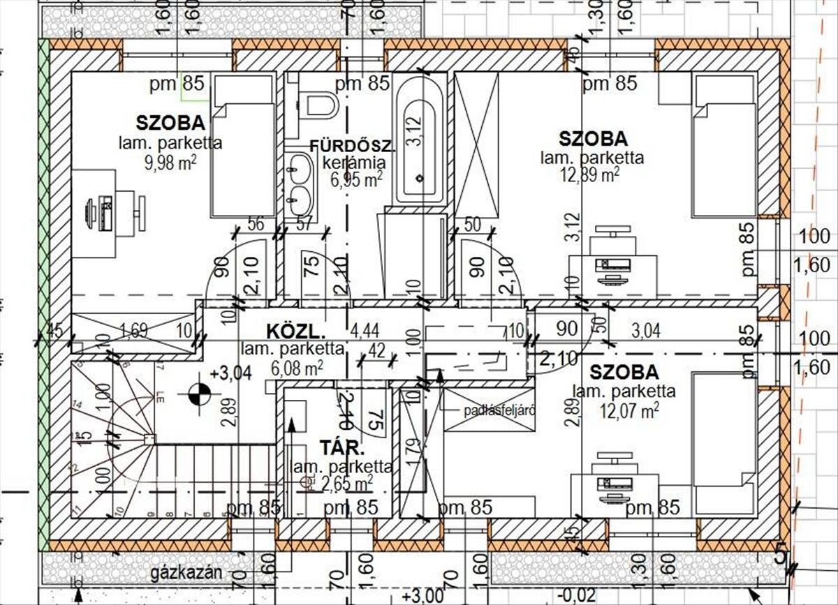 Hőellátás; fűtése: Kondenzációs gázkazán beépített, vagy különálló melegvíz-tárólóval. a fűtés rendszer padlófűtés szükség szerint kiegészítő radiátoros fűtésrendszerrel kerül kialakításra. a fürdőszobában a padlófűtés mellett 1 db törölköző szárítós radiátor kerül elhelyezésre.