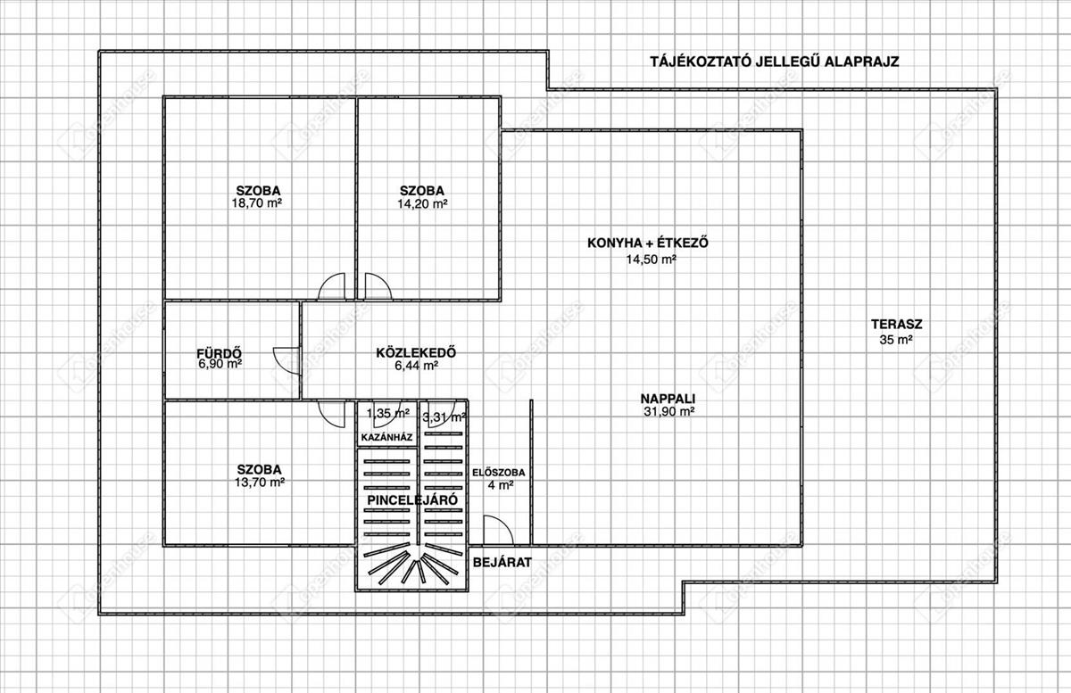 - 35 m² fedett terasz (közvetlen nappali kapcsolattal, nagyméretű tolóajtón keresztül)