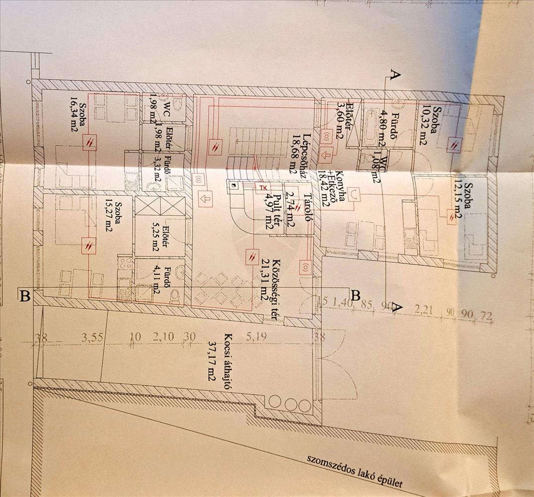 Pinceszint: közösségi tér (biliárd, pingpong, csocsó), szauna zuhanyzókkal, konditerem, raktár, mosókonyha és kazánház