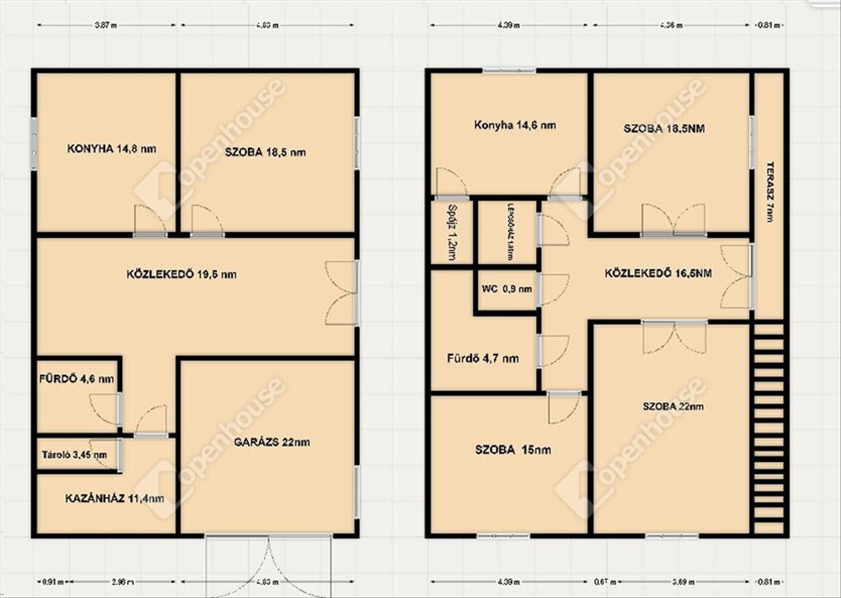 - a ház alapterülete 176m2, két szinten