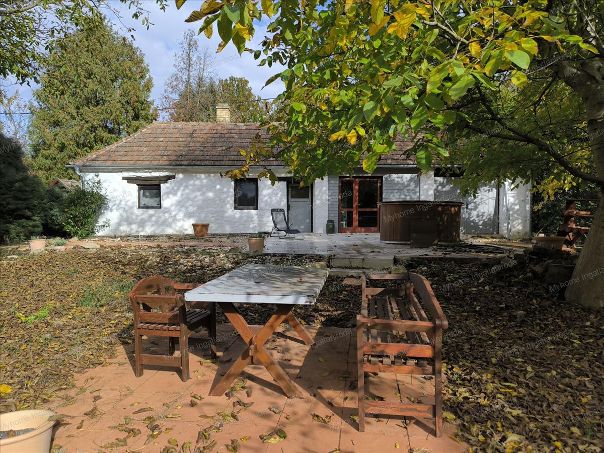 A telek rendezett, fás, részben burkolt udvarral és terasszal, ahol kerti bútorok és egy újszerű ( 2 éves) fával fűthető dézsa is elhelyezésre kerültek (külön fűthető akár a 300l villanybojlerrel is)