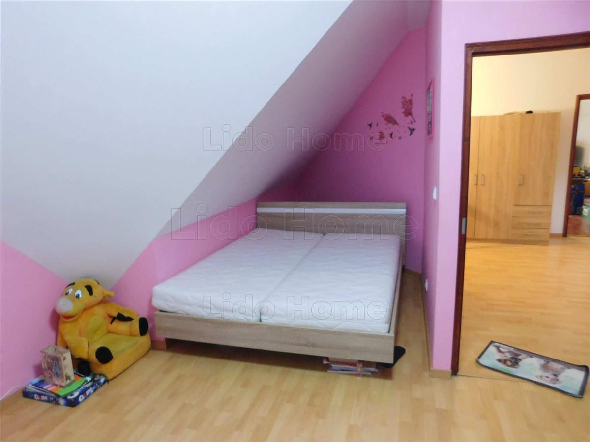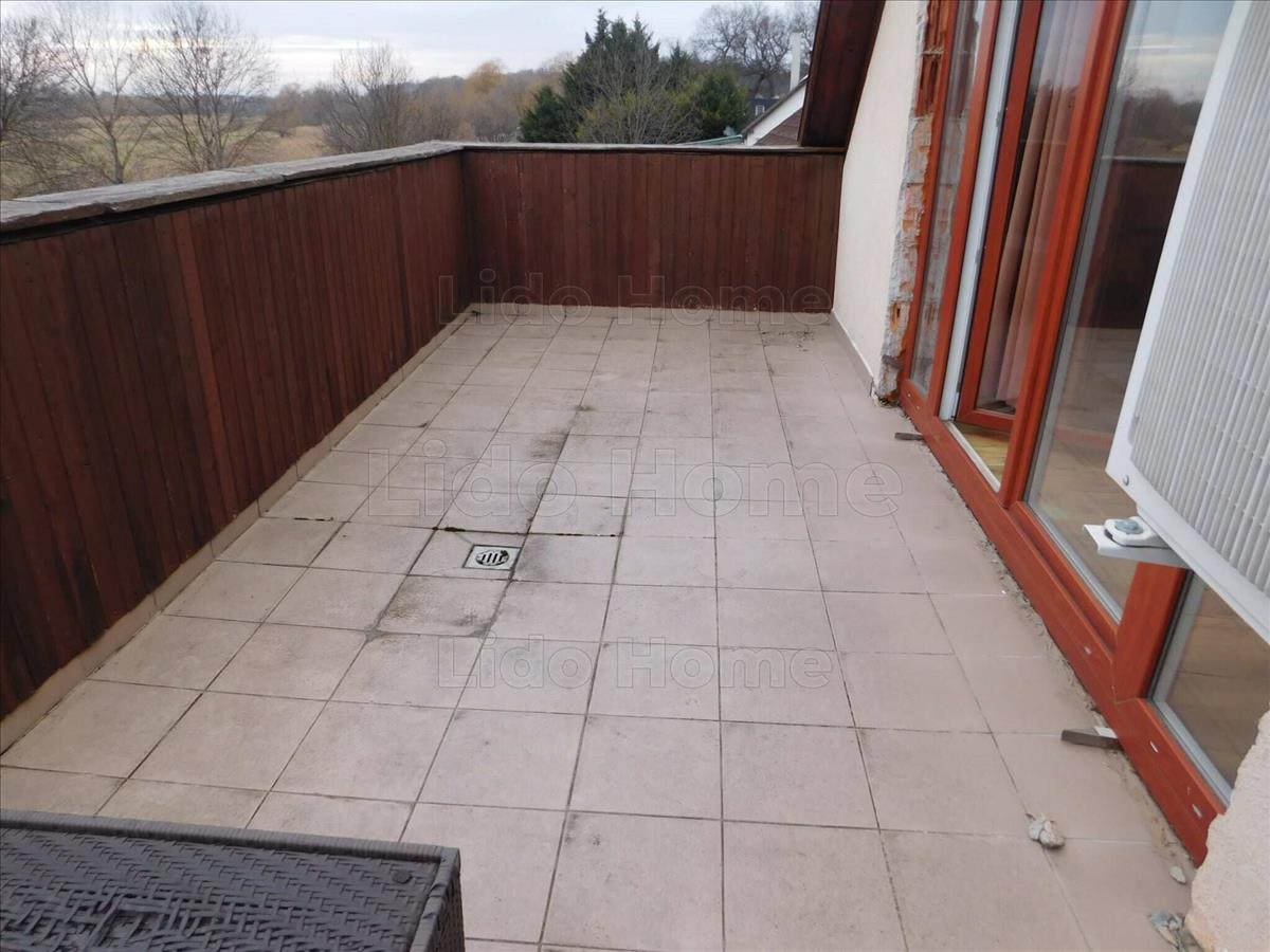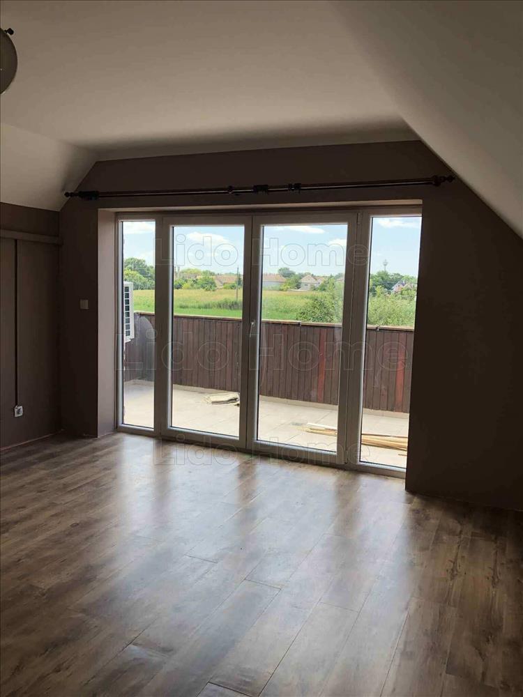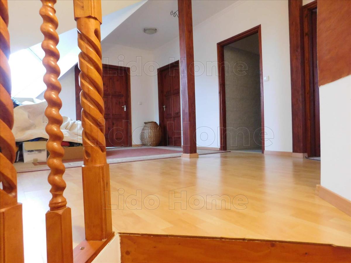 - padlástér előteréből nyílik 3 db tágas szoba, fa tetőtéri ablakokkal, hőszigetelt üveggel, az egyik szobából tágas teraszra léphetünk ki a szabadba, amelyből jó kilátás nyílik az udvarra, nagyközségre. a három szobából két szobában klíma került elhelyezésre, főleg a nyári meleg kellemesebb viselésére,