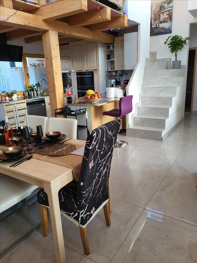 Innen tudunk felmenni a galériára, ami jelenleg dolgozó szobaként funkcionál, és innen is ki tudunk menni a teraszra.