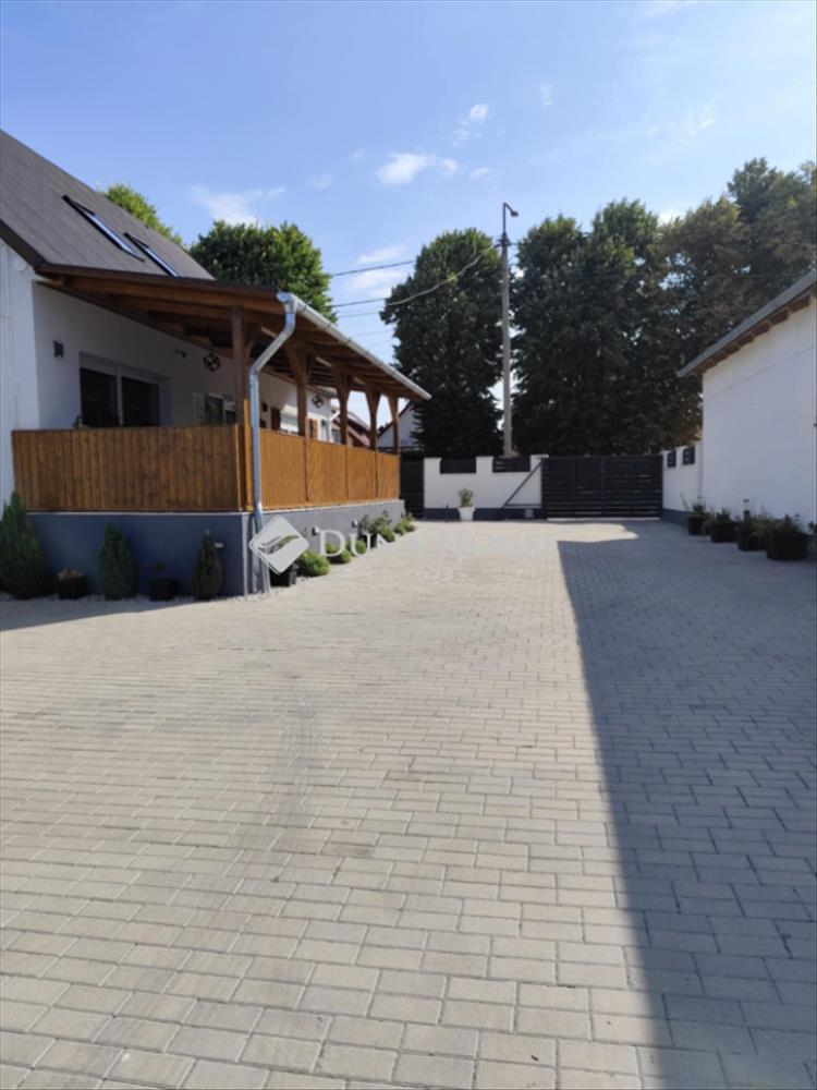 Elektromos kapu, térkövezett udva, autómata öntöző, parkosítás