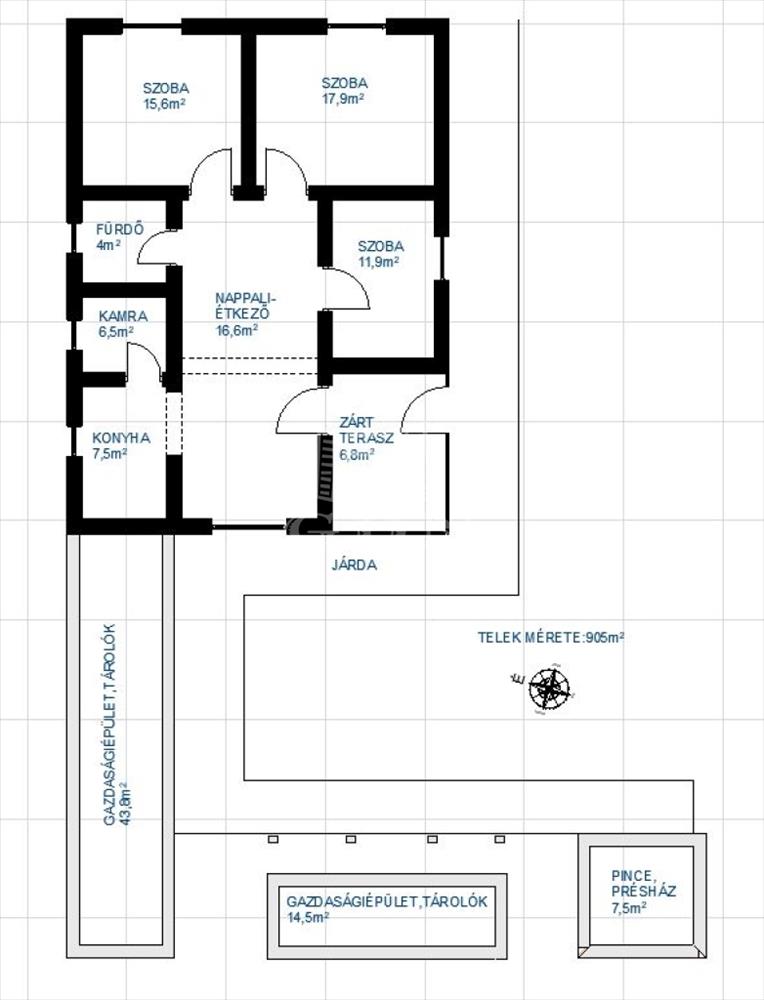 - Továbbá a ház folytatásában melléképületek láthatóak és a mellékletben található alaprajz szépen megmutatja azt, hogy például a pince hol található a telken.