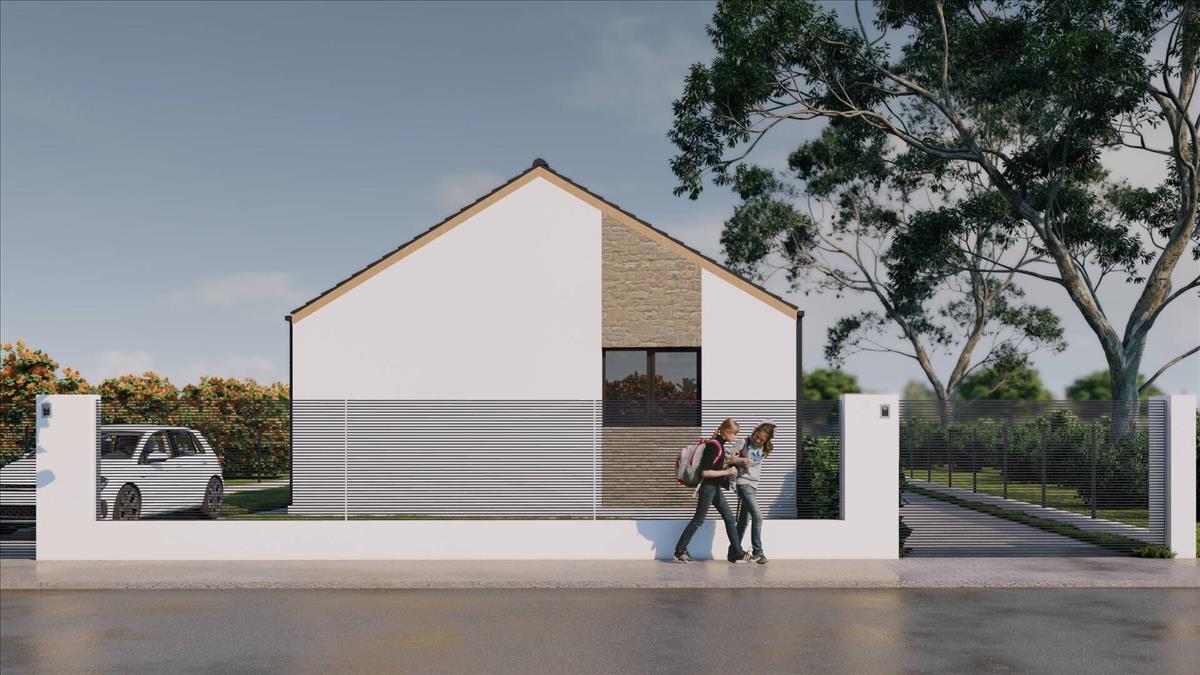 •A kialkudott vételár tartalmaz egy zsalukőből épülő, 50 cm-es alappal és az arról felálló zsalukő pillérekkel rendelkező, a ház színével megegyező színű homlokzati kerítést, valamint a hozzá tartozó kiskaput és elektromos nagykaput. a kerítés oszlopai között alumínium kerítéselemek lesznek antracit színben.
