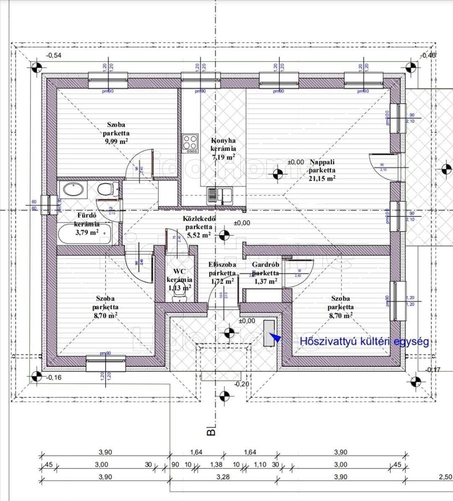 -Hőszivattyú állítja elő a meleget a padlófűtéshez illetve mennyezeti hűtés lesz beépítve.