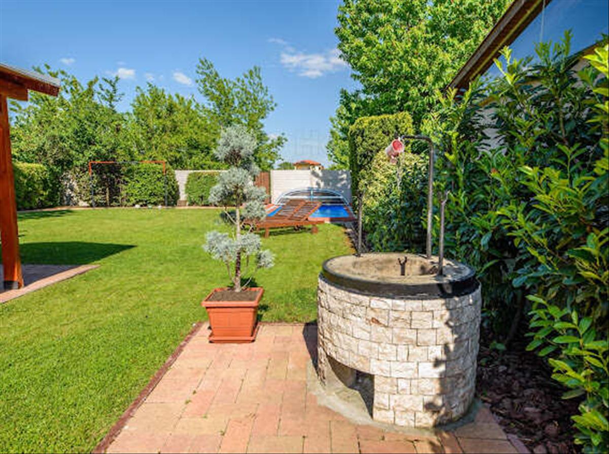-2 lakóház került kiépítésre (fő ház ~220 m2, a kis ház ~75 m2) a 890 m2-es telken, ahol helyett kapott fedett medence, szauna és szolárium is, a kert vakondhálóval felszerelt
