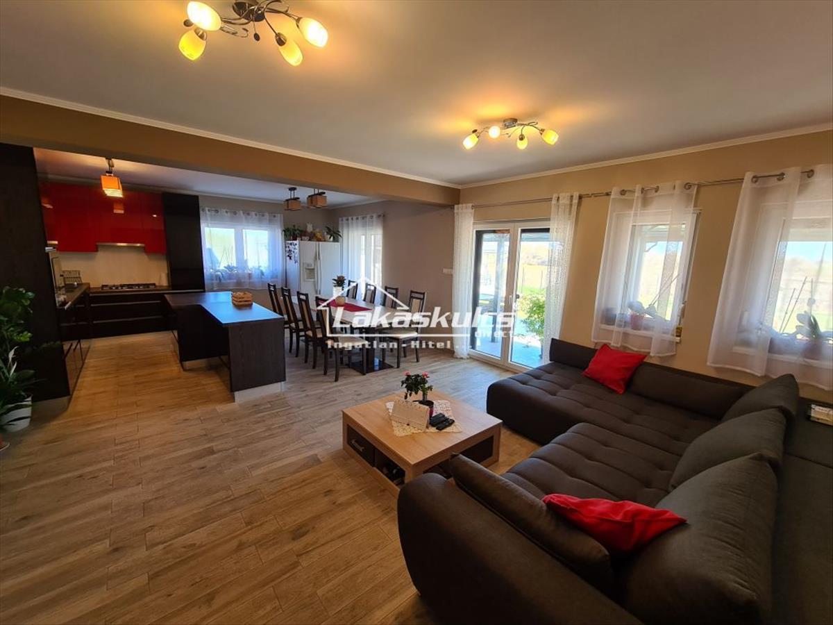 A 111, 17 m2 ( nm fedett terasz) alapterületű, remek elrendezésű házban kialakításra került egy előtér, nappali+konyha+étkező, vendég wc, tároló, 2 db fürdő, közlekedő, spájz, mosókonyha, 3 db szoba, és egy fedett terasz.
