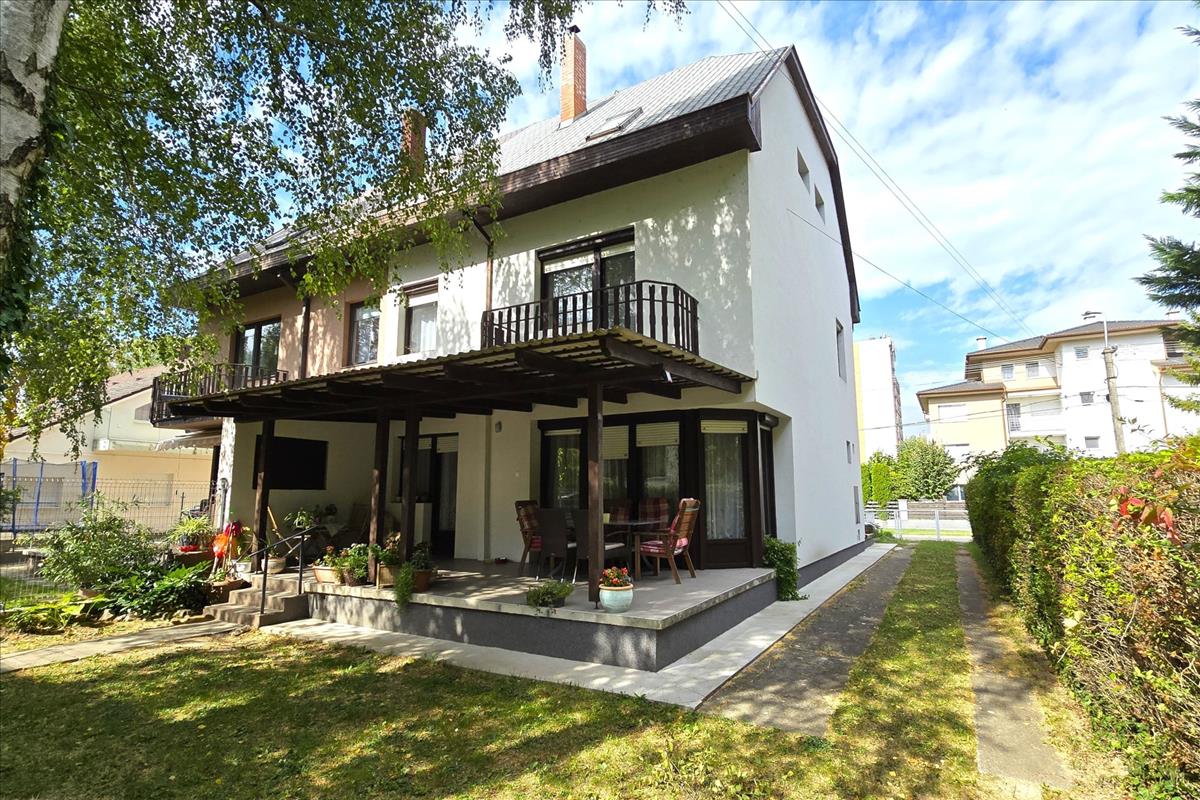 6 szoba, nappali-konyha-étkező, 3 fürdőszoba, 3 wc, garázs, valamint hangulatos hátsó