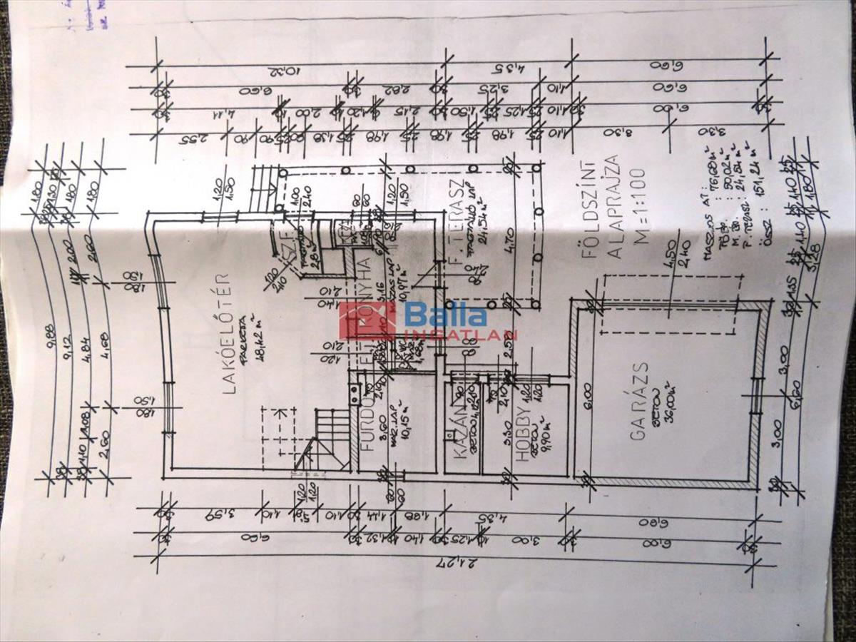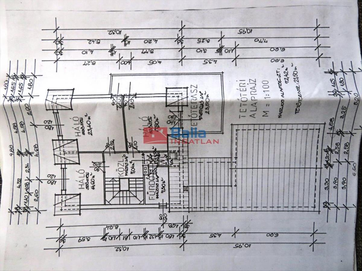 Emelet: 3 szoba, közlekedő, fürdőszoba, külön mellékhelyiség, 23. 5 m2 terasz.