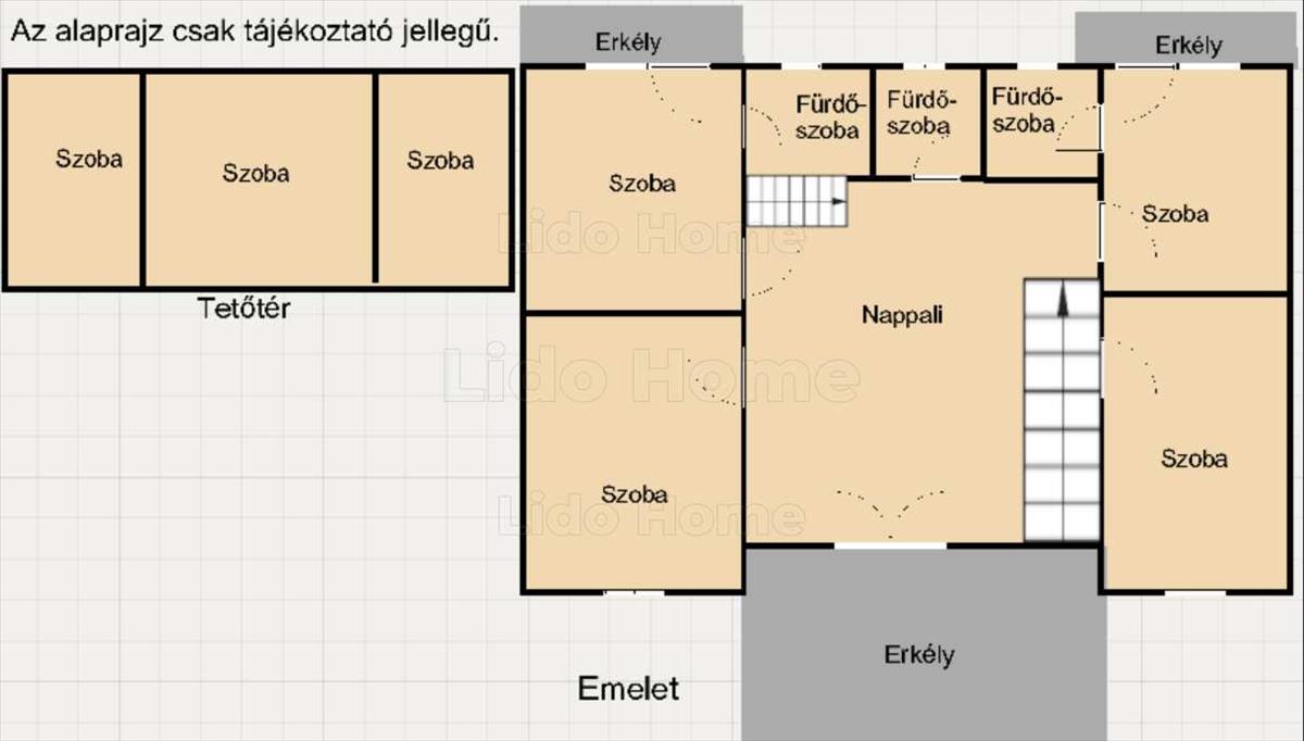 A tetőtérben további 3 szoba került kialakításra, mely jelenleg nem fűthető, akár le is zárható, tökéletes tároló, padlás is lehet.