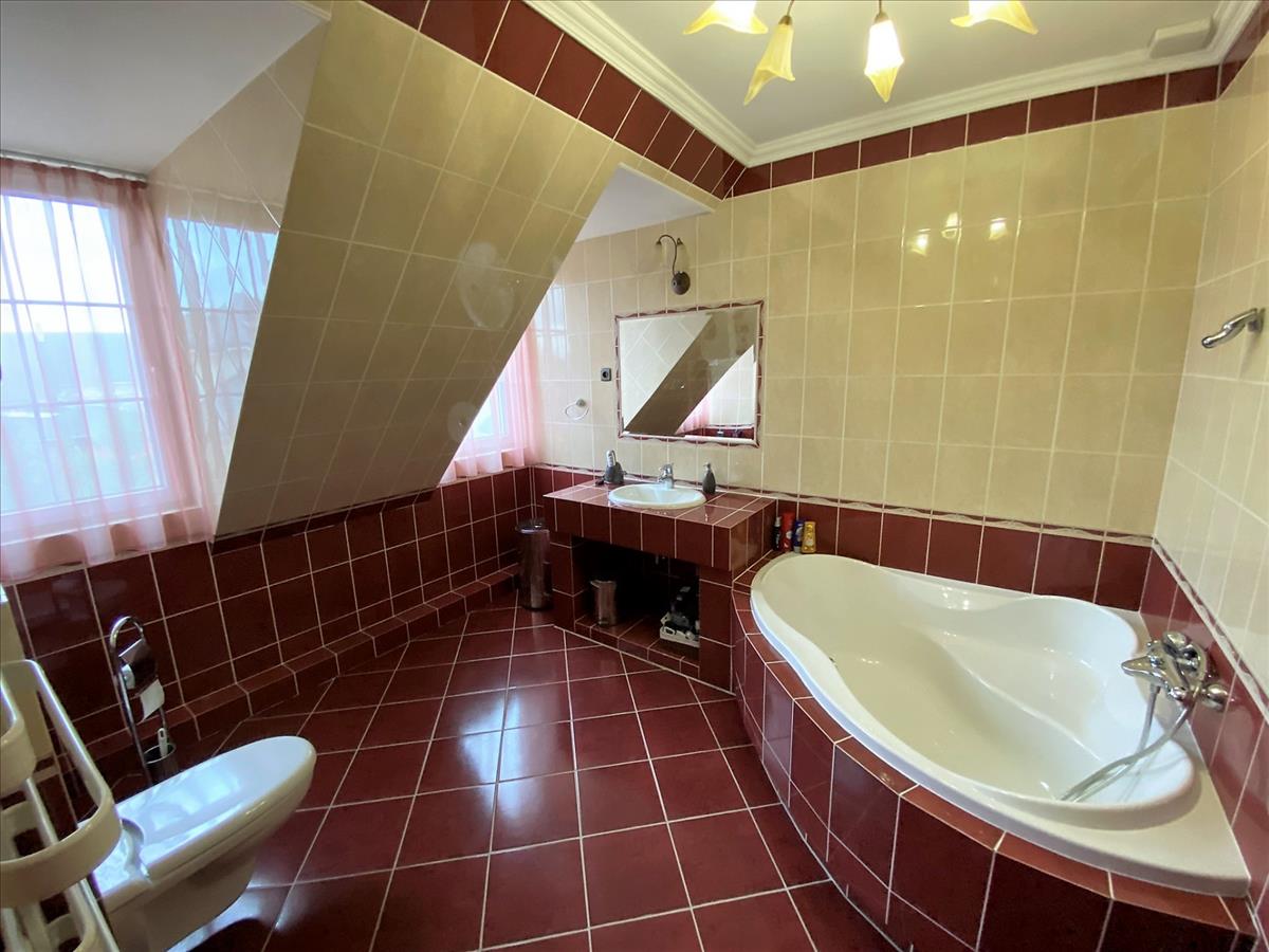 Földszinten tágas előszoba, dolgozószoba, mosdó wc-vel, gardróbszoba, nagy konyha különálló