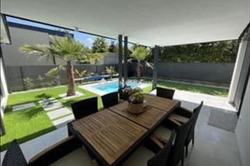 Siófoki Új Lakóövezetben Egyedi Stílusú Ingatlan – 900 méterre a Parttól! Csendes és kényelmes környezetben található új építésű ingatlan várja új tulajdonosát Siófok legvonzóbb részén. Az ingatlan egy tervezett és gondosan kiépített belső udvaron keresztül nyújt mediterrán hangulatot, ahol a pihenés és kikapcsolódás garantált. Az egyedülálló kertben található hűthető és fűthető medence, valamint külön bejáratú közösségi helység és mosdó várja az itt lakókat. Ez az ingatlan nem csak a megjelenésében mutat fiatalos és lendületes vonalat, de műszaki tartalma is átgondolt és modern. a hőszivattyúval padlózat és mennyezet fűtés-hűtés rendszere maximális komfortot biztosít minden évszakban. Az elektromos redőnyökkel és három rétegű nyílászárókkal tovább növelhető az energiahatékonyság és a lakók kényelme. a led világítás helyiségenként szabályozható, így mindig az Ön hangulatának megfelelően alakítható az otthon fénye. a Nobilia német minőségű gardrób szekrények, konyhabútor eleganciát és praktikusságot visznek az ingatlanba. Az ingatlan elosztása praktikus, Amerikai-konyha nappali melyből kertkapcsolatunk van, 3 hálószoba, háztartási helység, wc, fürdő, előszoba, előtér található. a kertben öntöző renszer van kialakítva, minden nyílászáró szúnyoghálóval felszerelt. Illetve elektromos kapubejáró. Az ingatlanhoz öt parkolóhely tartozik melyből egy fedett hely, így a gépjárművek elhelyezése sem okoz gondot. Ne habozzon, éljen a lehetőséggel, és sajátítsa ki ezt a páratlan ajánlatot Siófok legkedveltebb részén! a ház riasztó rendszerrel van felszerelve. Ha érdeklődik az ingatlan iránt, kérjük, lépjen kapcsolatba velem a megadott elérhetőségeken.Hívjon bizalommal, hétvégén is - +3620 4066872