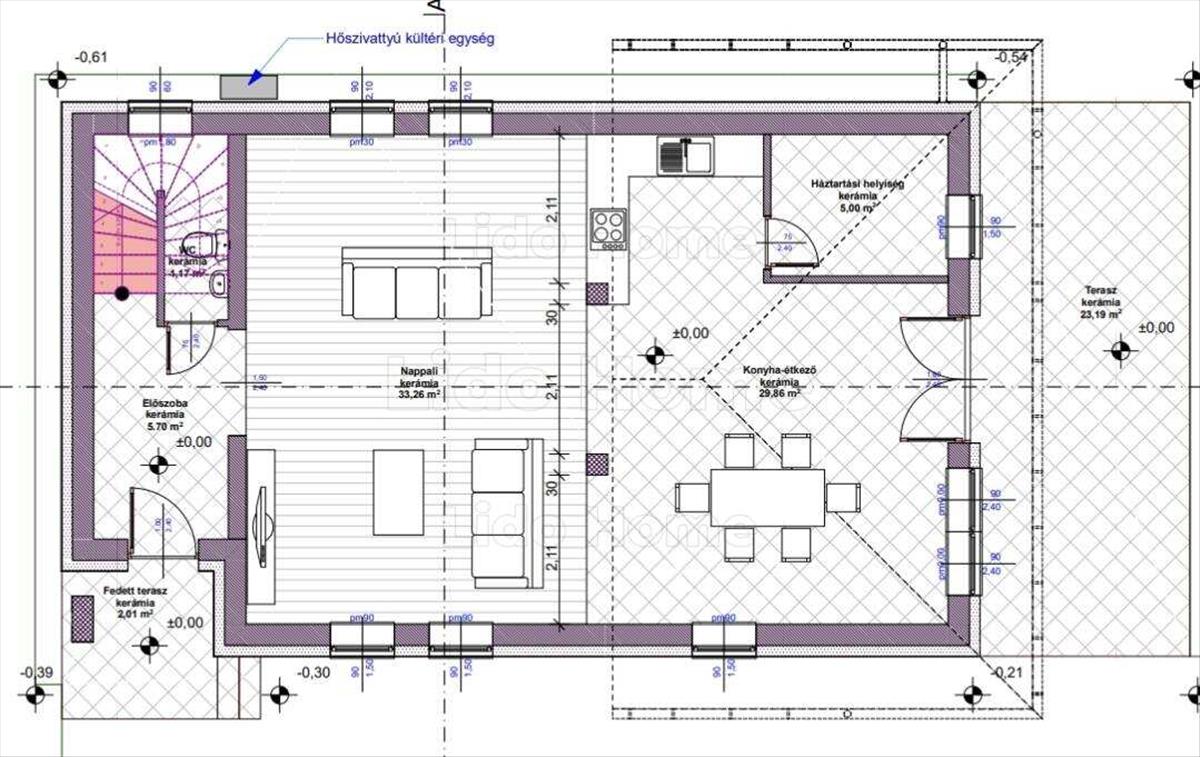 -Hőszivattyú állítja elő a meleget a padlófűtéshez illetve mennyezeti hűtés lesz beépítve.