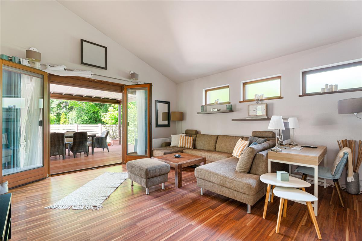 40m2 -es fedett terasz amelyet egy gombnyomással nyitottá lehet tenni.