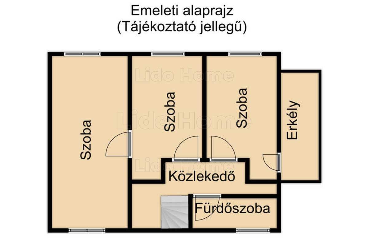 -Az emeleten 3 szoba, erkély és 1 fürdőszoba WC-vel került kialakításra.