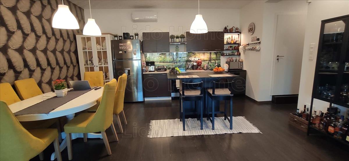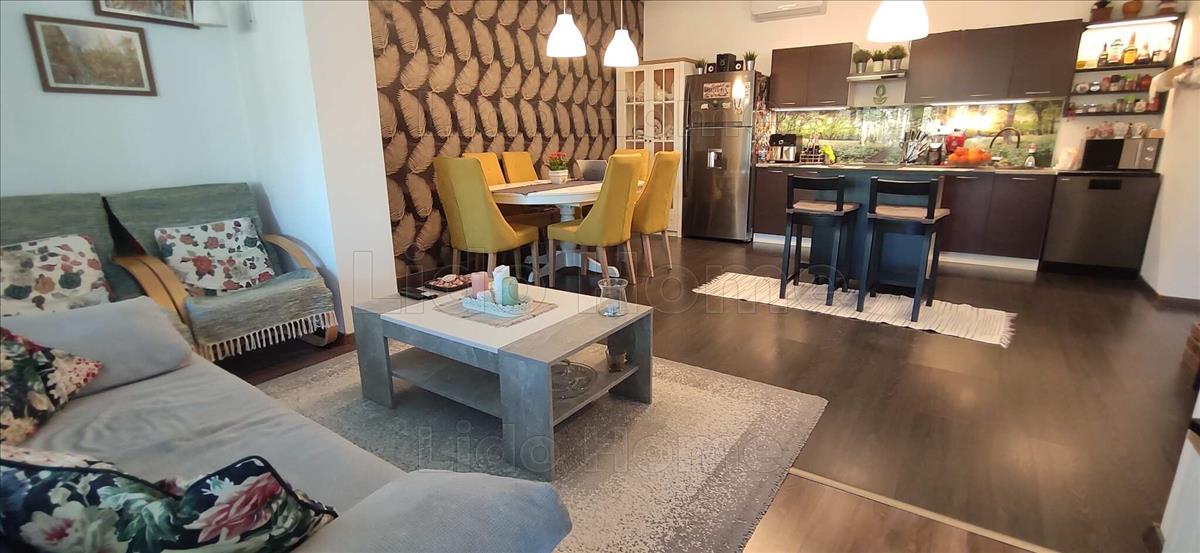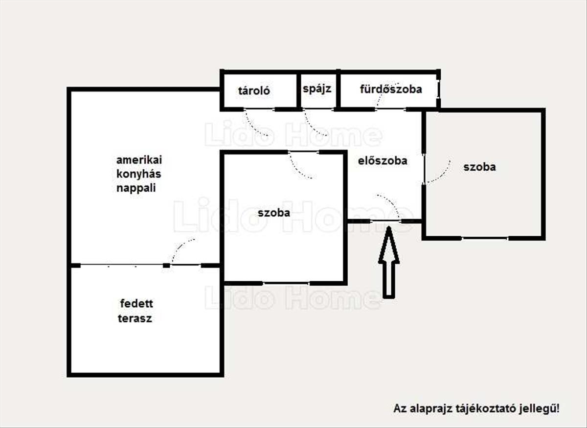 -elosztása: 2 hálószoba, amerikai konyhás nappali, éléskamra, fürdőszoba (zuhanykabin és kád) wc-vel, előtér, közlekedő, tároló