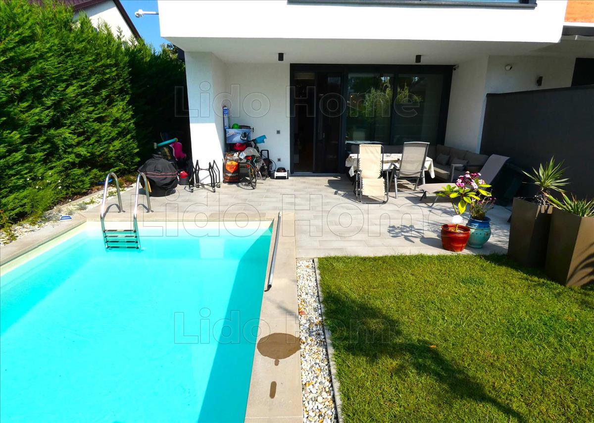A lido home ingatlan siófoki irodája eladásra kínálja ezt az exkluzív megjelenésű és kivitelezésű luxus lakóházat Siófok ezüstparti részén, 300 m-re a Balaton – tól.A 2018-ban épült, 133 m2-es lakótérrel, nagyméretű terasszal/erkéllyel és hőszivattyús fűtéssel melegített külső medencével rendelkező kettő szintes épület Siófok-Ezüstpart városrészének csendes utcájában, 396 m2-es ingatlanon helyezkedik el. Belsőépítész által megtervezett egyedi bútorai az egyéb kiegészítőkkel együtt különleges harmóniát biztosítanak a belső tereknek. Nappalijának kandallója mellől élvezhetjük a téli Balaton nyújtotta örömöket. Különleges kialakítása és megjelenése révén egész évben élvezheti ezen tökéletes kikapcsolódást nyújtó luxus ingatlan varázslatos hangulatát, amely 2018-ban a „Szép házak kiadványban való megjelenítést is kiérdemelte. a ház villamos energia ellátását a tetőn elhelyezett napelemek biztosítják. a nagyméretű nyílászáróknak köszönhetően ezen napfényben úszó, családbarát kialakítású, tágas terekkel, nagy teraszokkal rendelkező, prémium anyagok felhasználásával megépített nappali + 4 szobás + kettő fürdőszobás lakóház további jellemzői: