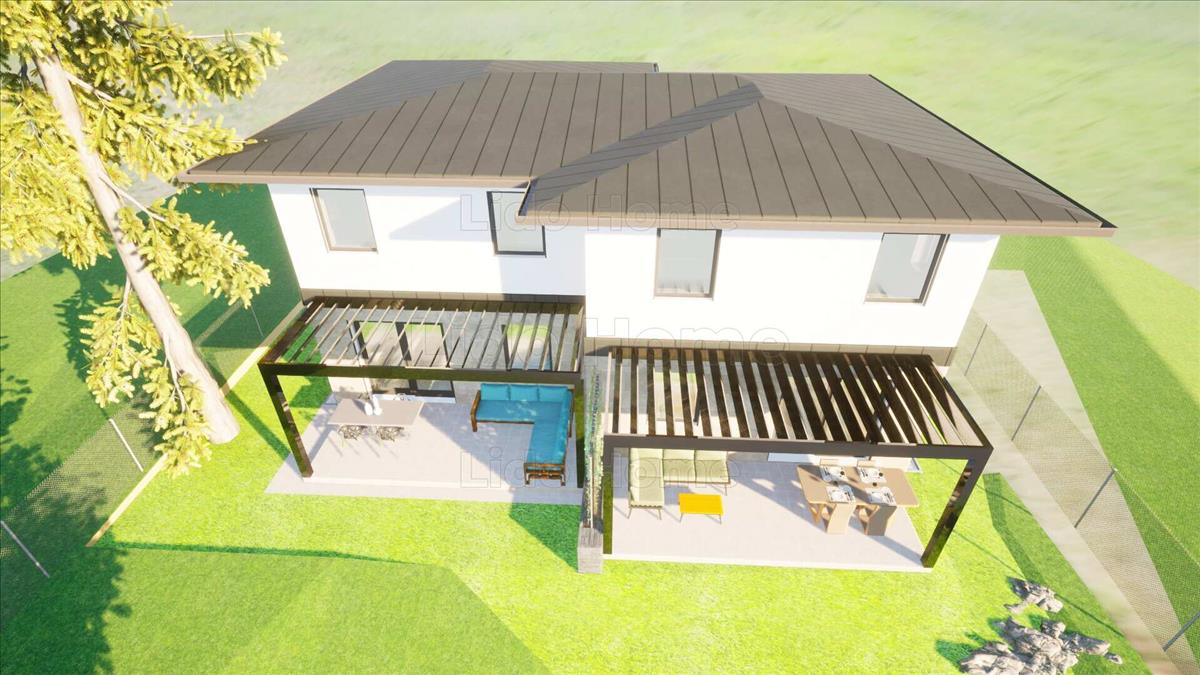 A ház egy 456 m2-es építési telken megvalósuló ikerház egyik lakóegysége, használati megosztással leválasztásra kerülő 228 m2-es telekrésszel. Az egyes ingatlanrészek egymás zavarása nélküli önálló megközelítéssel bírnak. Az építkezés várható befejezése 2026. IV. Név.
