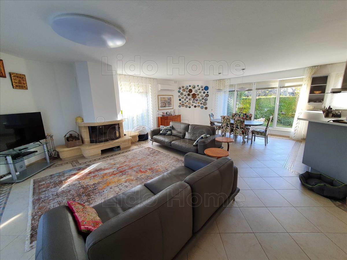 A földszinten (214 m2) található egy előtér, hatalmas, napfényes amerikai konyhás nappali kandallóval, egy vendég wc, illetve a wellness részleg, mely egy fűtött medencét (37 m2), egy szaunát (4 m2) és egy zuhanyzót rejt magában. a nappaliból elérhető egy nagy méretű, félig fedett terasz (40 m2) is, melyről a kertbe léphetünk ki.