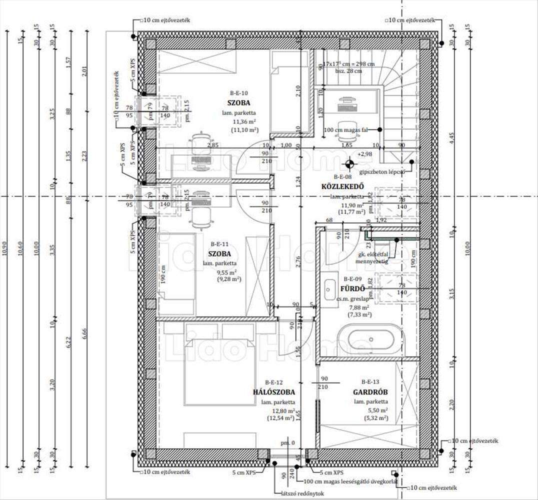 • 30 cm vastag falazat + 15 cm grafitos hőszigetelés, szabályozása külön helyiségenként.