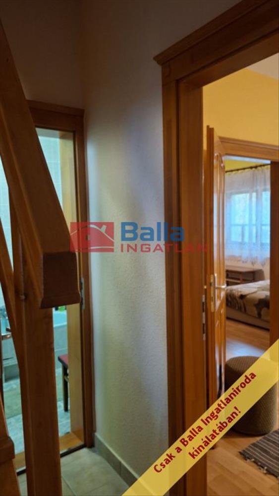 A földszint nappalija a kertből is elérhető, ahonnan körbejárhatóan konyha; két nagyméretű, déli fekvésű szoba; fürdőszoba; külön mellékhelyiség; lépcsőház elosztású tereit a keleti bejárat felől fedett terasz teszi teljessé. emeletén az előtérből két szoba, másik oldalán a Balaton felé néző, igényesen burkolt, kő korláttal kerített, félköríves nyitott terasz vár minket. Az ingatlan alatt pinceszint, ahol a gázkazán is helyet kapott.