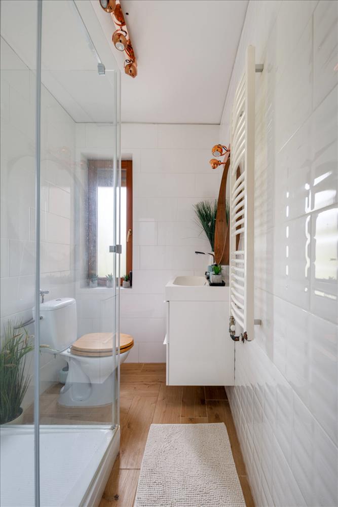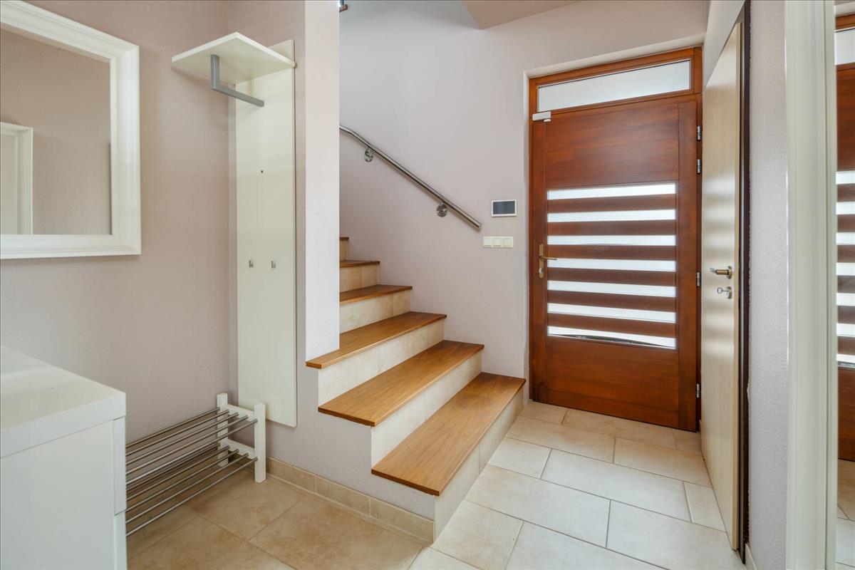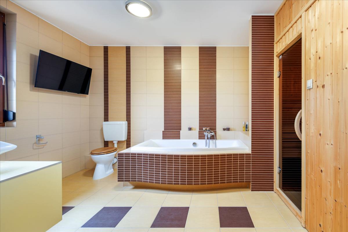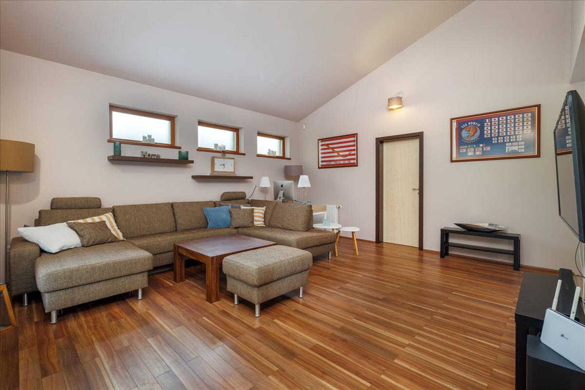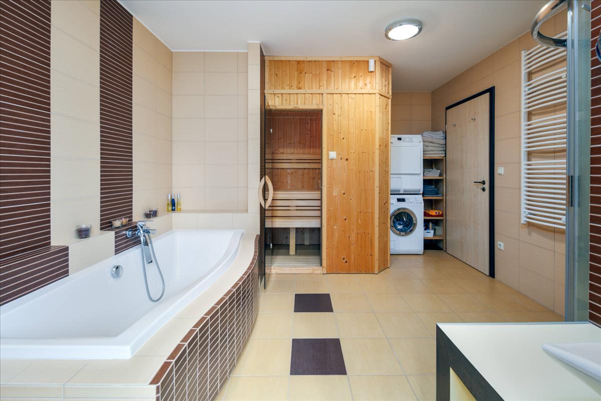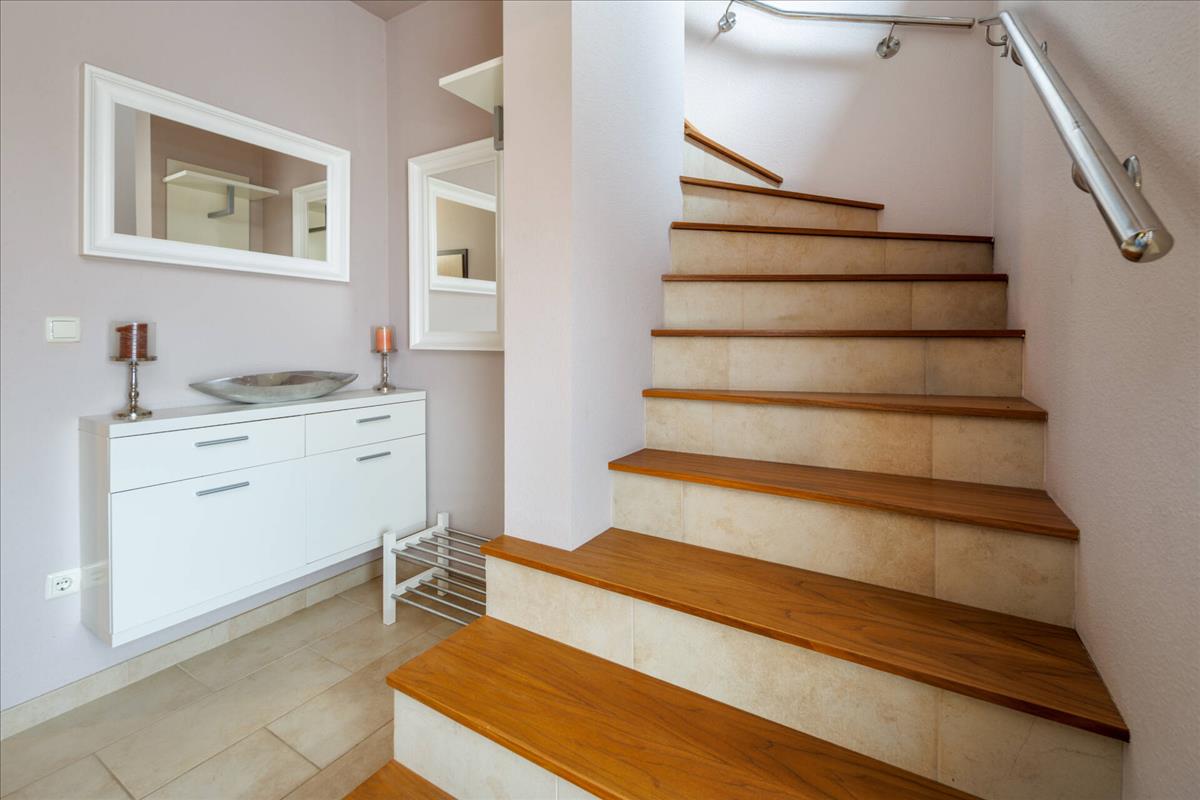 Az emeletre kényelmes lépcső vezet fel, ahol egy hálószoba és egy tágas fürdőszoba szaunával várja új tulajdonosát – a tökéletes kikapcsolódás jegyében.