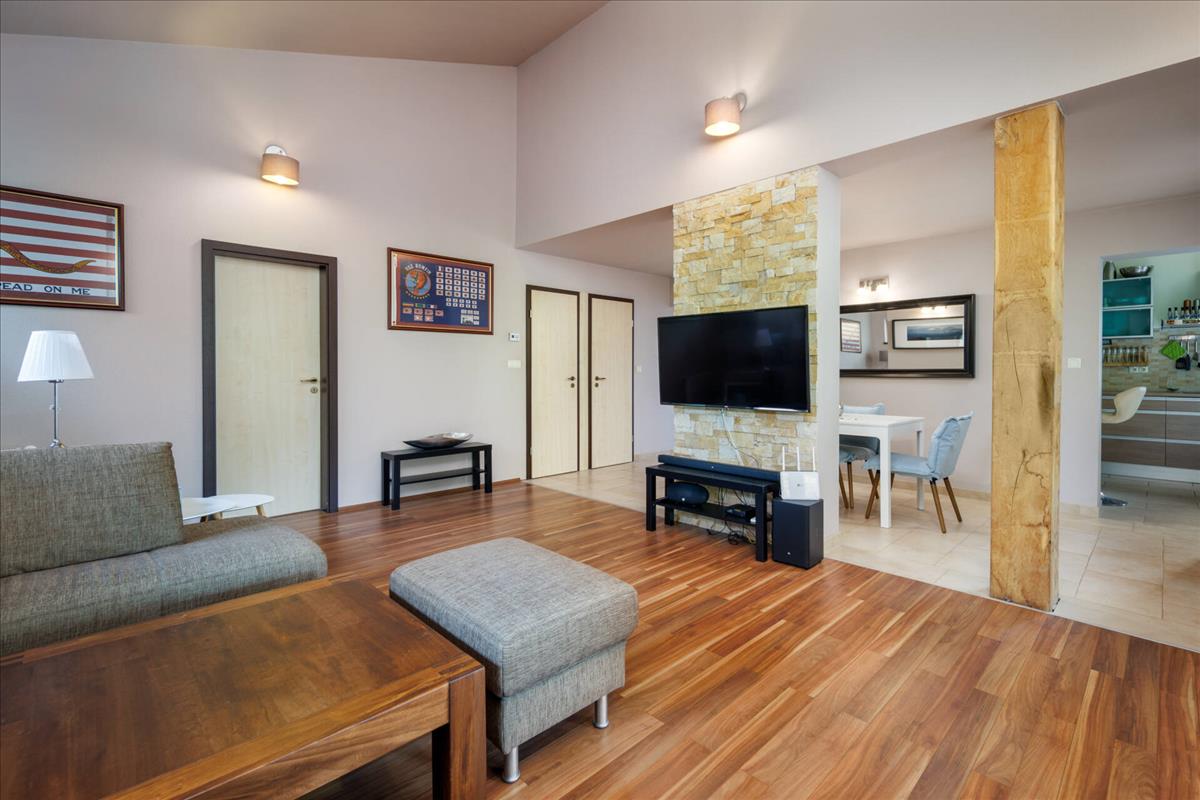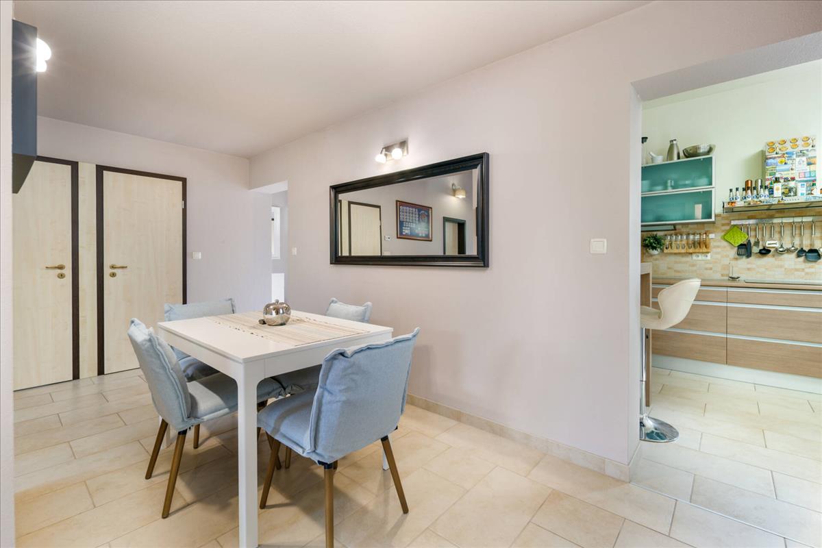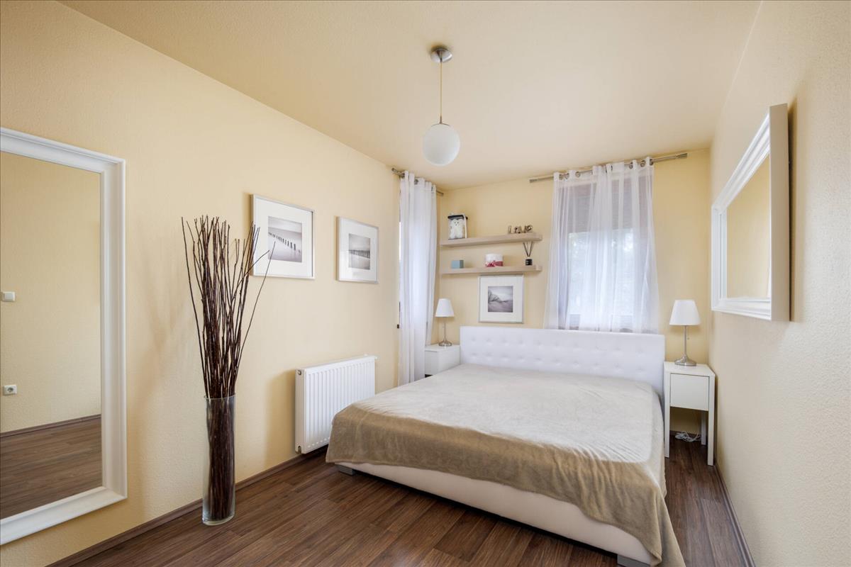 A beépített, gépesített konyhabútor és a beépített gardróbszekrények a vételár részét képezik, de igény szerint a teljes berendezés is maradhat.