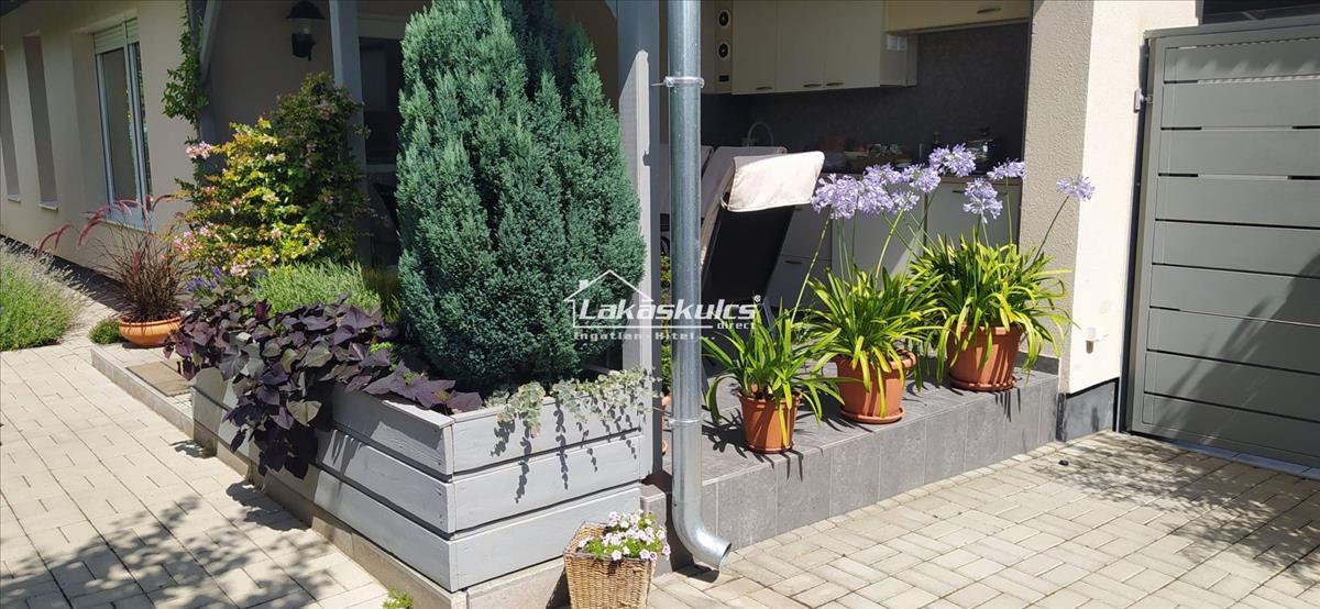 A ház körül gondosan megtervezett és folyamatosan karbantartott kert várja az új tulajdonosát. a változatos növényekkel beültetett zöldterület igazi oázis: díszfák, örökzöldek, cserjék, szezonális növények teremtik meg az egyedi hangulatot. a kert minden szeglete külön élményt nyújt, fútkúttal rendelkezik.