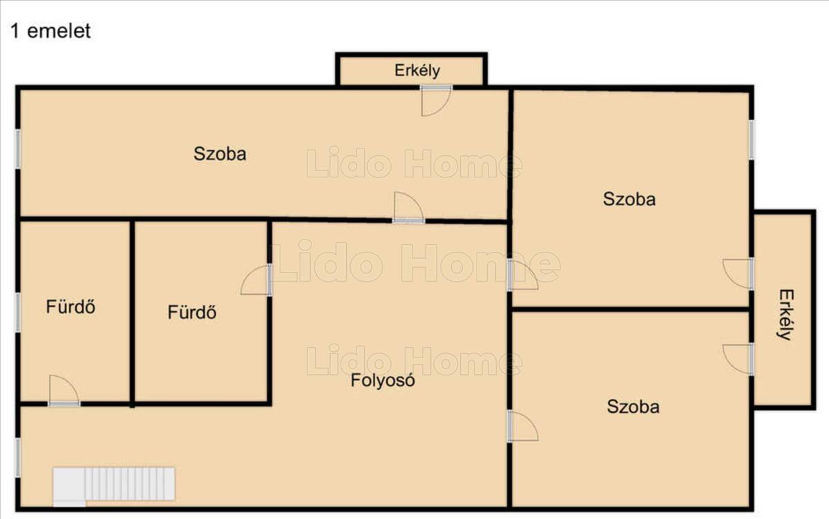 Az első szinten található: 2 db fürdőszoba, illetve 3db szoba erkéllyel.