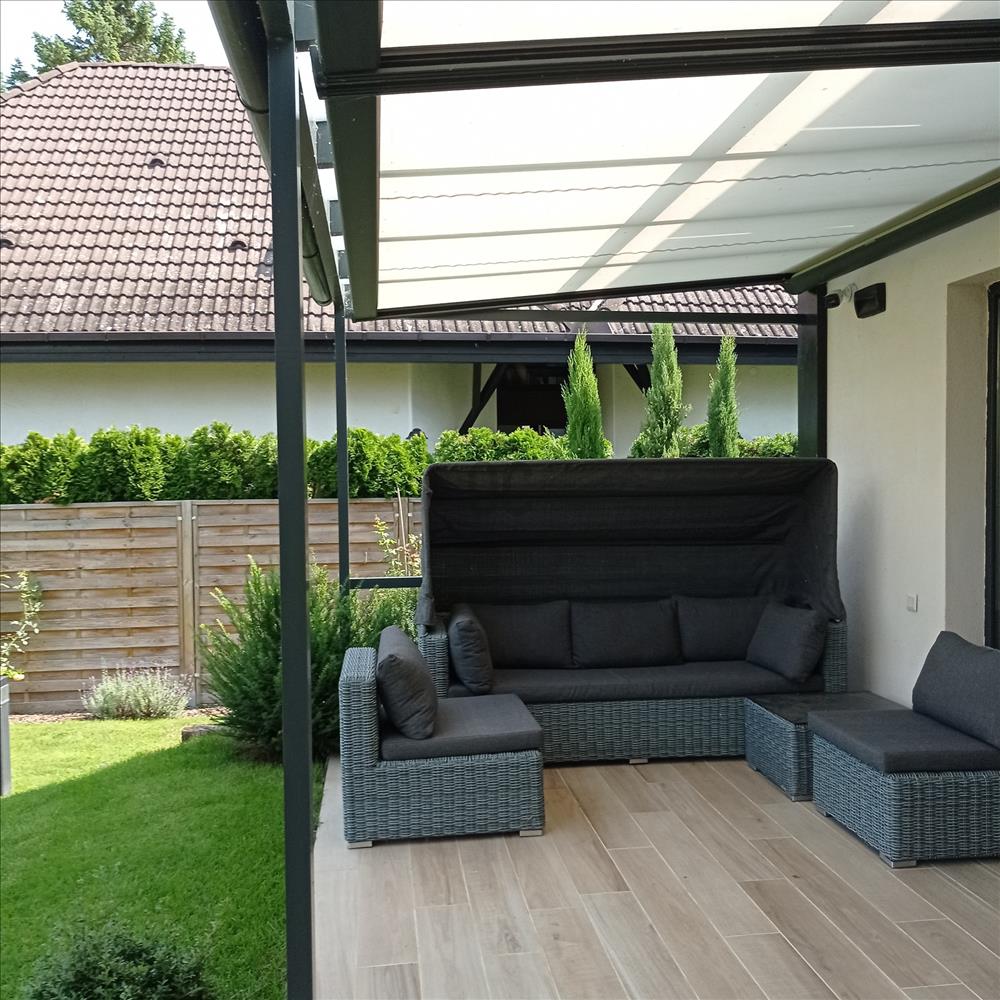 Az ingatlanhoz tartozik egy 700 nm-es telek, amely kertkapcsolatos, és egy 20 nm-es terasz és erkély is tartozik hozzá, ahonnan csodálatos panoráma nyílik a környékre. Az automata öntözőrendszerrel felszerelt kert gondozása egyszerű és könnyű, így Önnek nem kell aggódnia a növények és a fű rendben tartásáért.