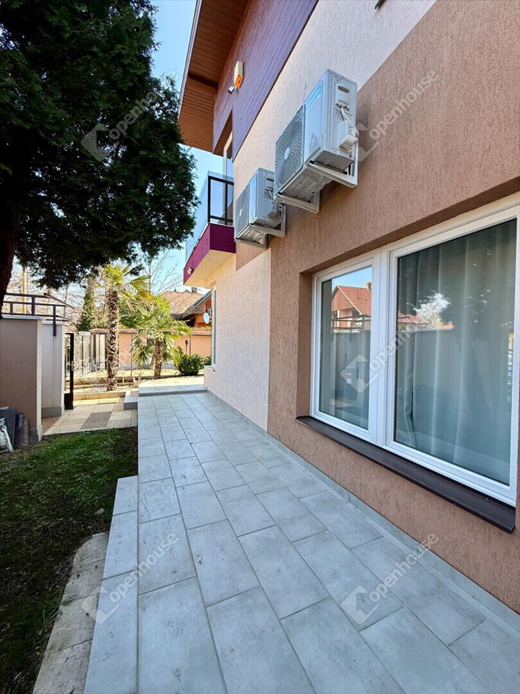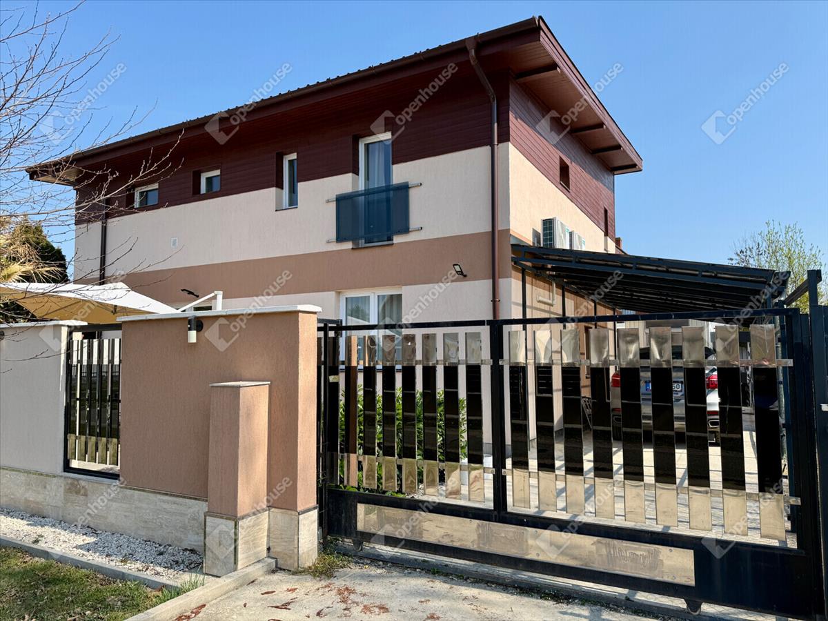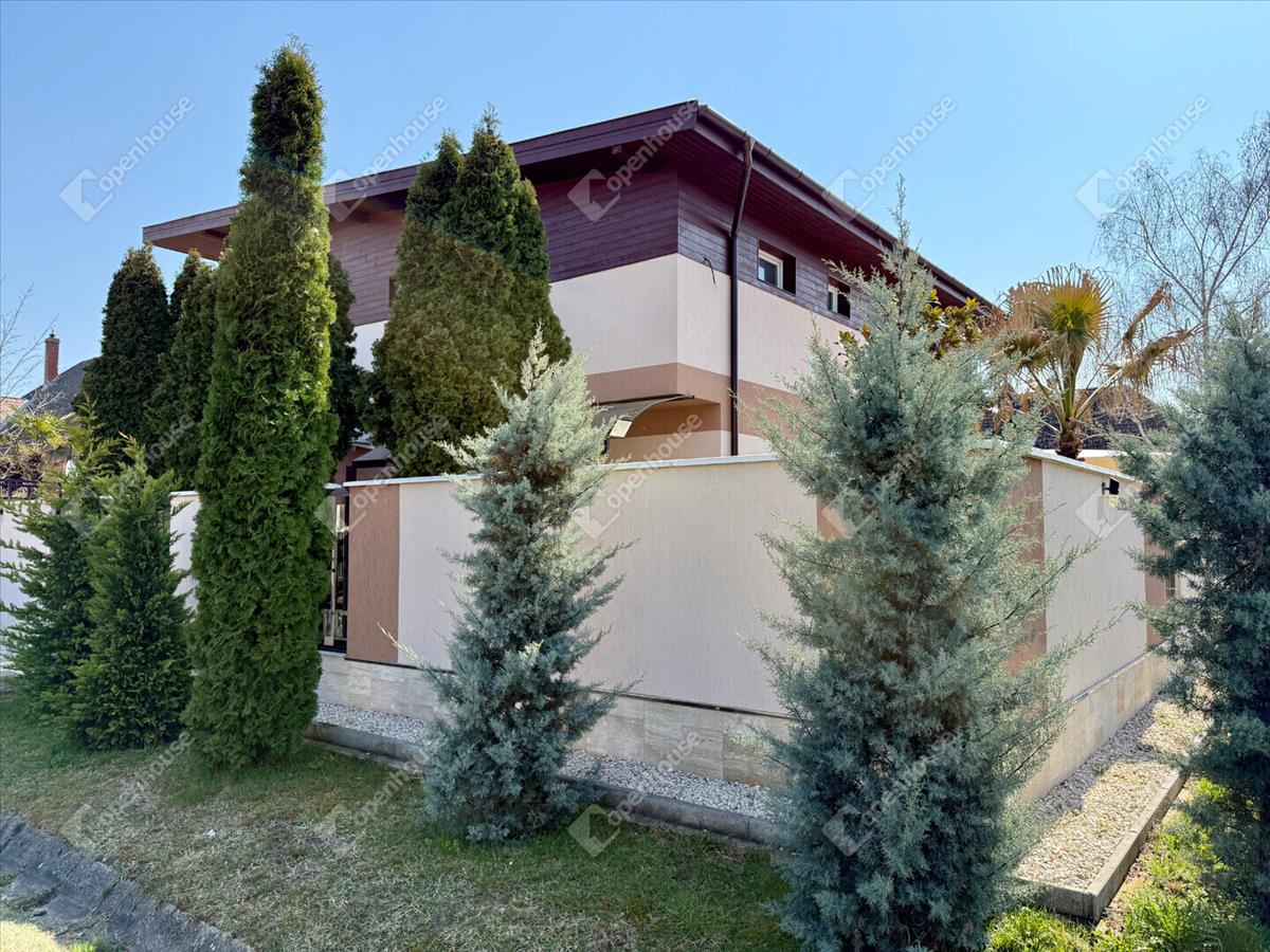 A mediterrán hangulatot árasztó ingatlan nemcsak esztétikájával, hanem praktikus kialakításával is kiemelkedik. a saroktelek adottságainak köszönhetően két irányból megközelíthető, így több autó számára is kényelmes parkolási lehetőséget biztosít – fedett és nyitott, zárt udvari beállókkal egyaránt.